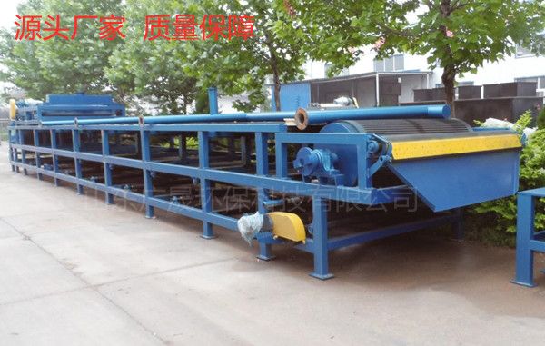 大理石真空脱水机设备是在移动带式过滤机的基础上开发的一种先进的提取设备,它是一种用来分离固-液两相组合的各种悬浮物的迅速过滤和脱水的分离设备。