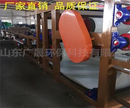 沙场泥浆压干机是通过两条滤带缠绕在一系列顺序排列、大小不等的辊轮上,利用滤带间的挤压和剪切作用,来脱除料浆中水分的一种压滤设备,具有连续作业、自动化程度高、节能、使用维护方便等优点。