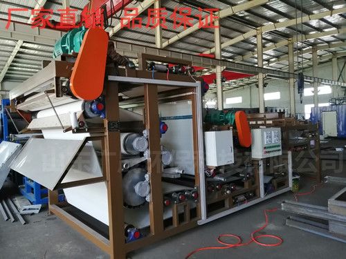 石场泥浆脱水机是依据化学絮凝接触过滤和机械挤压原理而制成的 固液分离设备,因其具有工艺流程简单、自动化程度高、运行连续、控制操作简便和工作过程可调节等一系列优点,并且省却了污泥浓缩池、在一定程度上节省了建设资金,正得到越来越广泛的应用。