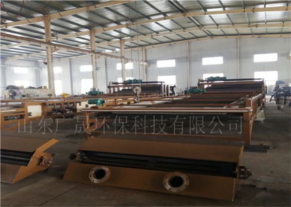 洗沙污泥压滤机包括不锈钢机架、重力脱水段、压榨段、泥耙、驱动装置、滤带清洗装置,滤带张紧装置、滤带纠偏系统、滤液收集盘及排水盘,内部电线及管道等,全部使用耐磨耐腐蚀材料,确保设备长时间稳定运行。