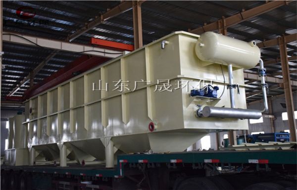 洗涤工厂水处理是向水中通入或设法产生大量的微细气泡,形成水、气、被去除物质的三相混合体,使气泡附着在悬浮颗粒上,因黏合体密度小于水而上浮到水面,实现水和悬浮物分离,达到净化废水的目的。