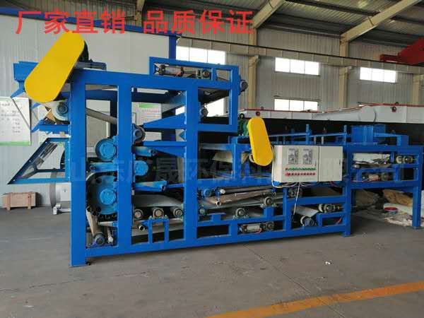 玉米渣脱水机是通过两条滤带缠绕在一系列顺序排列、大小不等的辊轮上,利用滤带间的挤压和剪切作用,来脱除料浆中水分的一种压滤设备,具有着能连续作业、自动化程度高、节能、使用维护方便等优点,是一种进行污泥脱水减量化处理的理想设备。