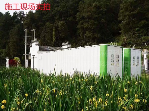 污水由排水系统收集后,进入瓦楞板一体化污水处理设备的格栅井,去除颗粒杂物后,进入调节池,进行均质均量,调节池设置液位控制器,再经液位控制仪传递信号,由提升泵送至A级生物接触氧化池,进行酸化水解和硝化反硝化,降低有机物浓度,去除部分氨氮,后入流0级生物接触氧化池进行好氧生化反应,o级生物池分为两级,在此绝大部分有机污染物通过生物氧化、吸附得以降解,出水自流至二沉池进行固液分离后,沉淀池 上清液流入消毒池,经投加氧片接触溶解,杀灭水中有害菌种,消毒后的清水用泵送入过滤器出水可用于浇花,冲厕等或外排.由格栅截留下的杂物定期装入小车倾倒至垃圾场,二沉池中的污泥部分回流至A 级生物处理池,另一部分污泥至污泥池进行污泥消化后定期抽吸外运,污泥池上清液回流至调节池再处理.